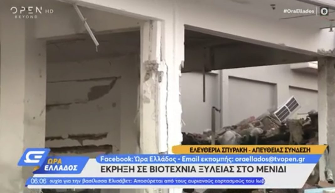 Σοκαρουν οι πρώτες εικόνες μετά την μεγάλη έκρηξη στο Μενίδι με το παλιό ξυλουργείο να έχει ισοπεδωθεί, οι τοίχοι έχουν καταρρεύσει, οι μονάδες κλιματιστικών έχουν εκσφενδονιστεί σχεδόν 50 μέτρα μακριά,ενώ σε απόσταση 300 μέτρων έχουν σπάσει τζάμια αυτοκινήτων.