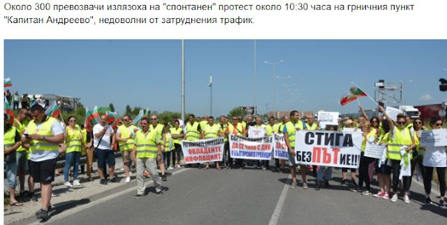 Περίπου 300 οδηγοί φορτηγών πραγματοποίησαν «αυθόρμητη» διαμαρτυρία γύρω στις 10:30 το πρωί στο συνοριακό πέρασμα Kapitan Andreevo, δυσαρεστημένοι από τη δύσκολη κυκλοφορία.