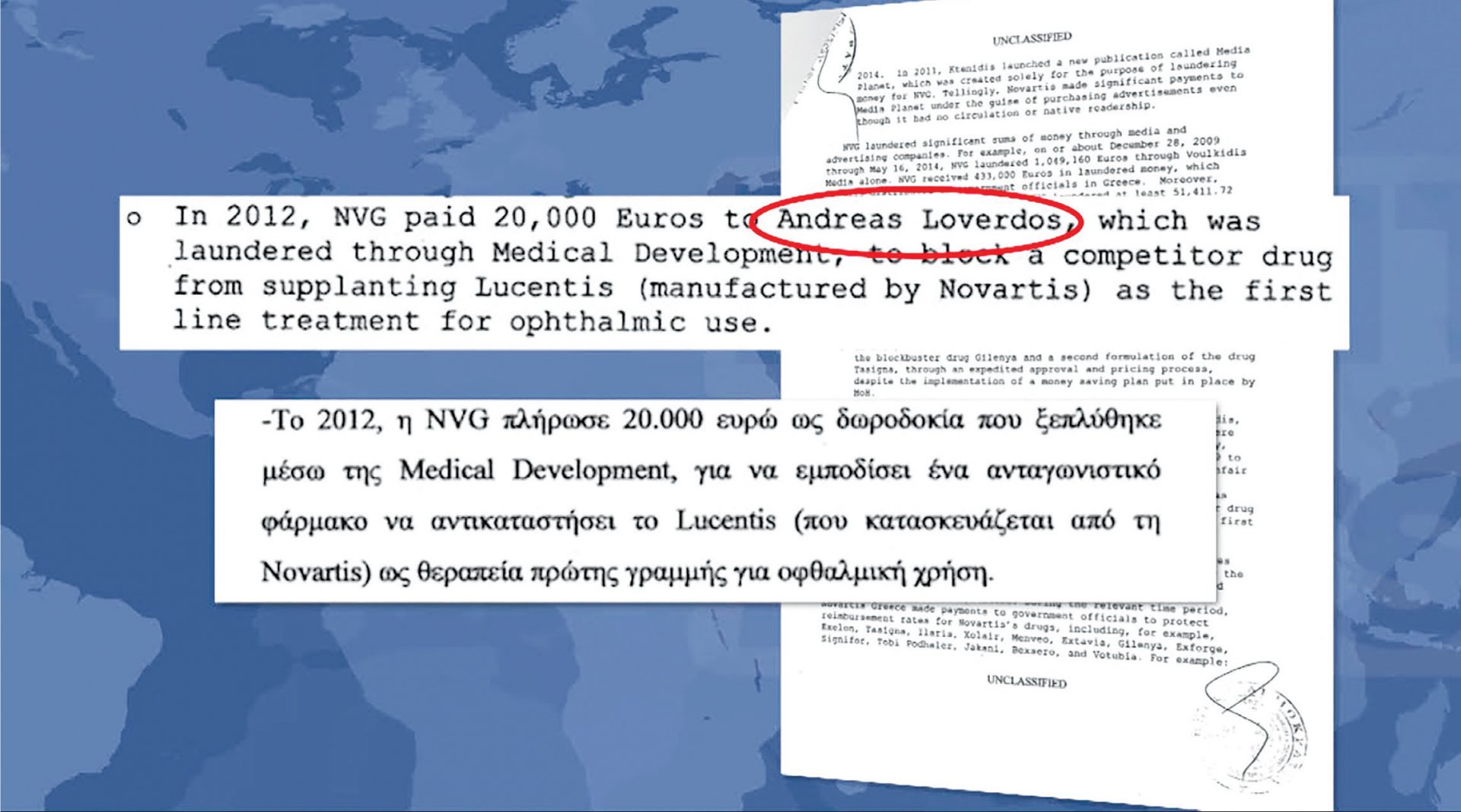 Το περίεργο είναι πως το όνομα του κ. Λοβέρδου –σύμφωνα με μαρτυρίες– υπήρχε σε έγγραφα όταν ηταν σε διερεύνηση το σκάνδαλο Novartis. Στη συνέχεια και ξαναζητήθηκε η μετάφραση του ίδιου εγγράφου όπου αναφέρεται το όνομα του πρώην υπουργού με την επισήμανση ότι του δόθηκαν από την Novartis με 20.000 ευρώ τα οποία «ξεπλύθηκαν» μέσω άλλης εταιρίας.