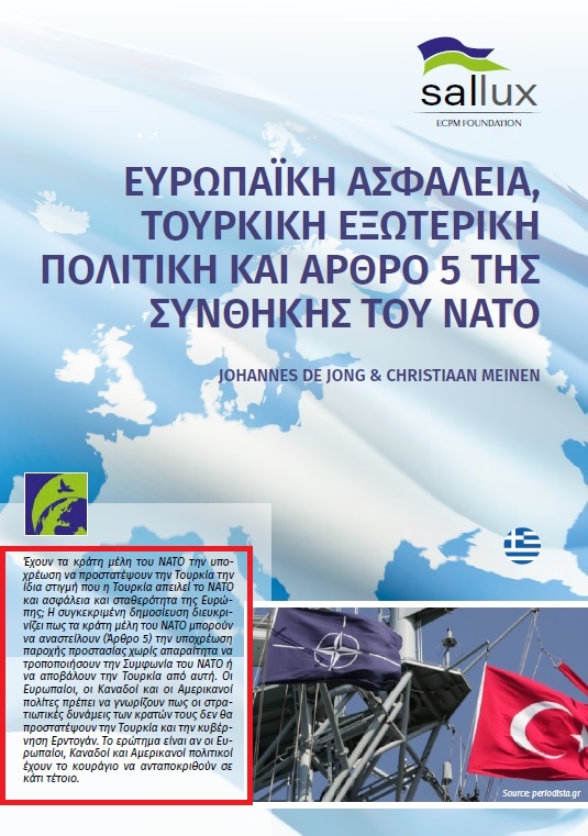 Αυτό αναφέρει στο εισαγωγικό της σημείωμα άρθρο του Sallux* του 2020, με τίτλο “ΕΥΡΩΠΑΪΚΗ ΑΣΦΑΛΕΙΑ, ΤΟΥΡΚΙΚΗ ΕΞΩΤΕΡΙΚΗ ΠΟΛΙΤΙΚΗ ΚΑΙ ΑΡΘΡΟ 5 ΤΗΣ ΣΥΝΘΗΚΗΣ ΤΟΥ ΝΑΤΟ”