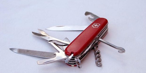 Έπρεπε, όμως, να παρουσιάσει κάτι διαφορετικό από τους Γερμανούς για να πάρει τη δουλειά. Κατασκεύασε, λοιπόν, ένα σουγιά με ξύλινη θήκη, που μέσα του χωρούσε όχι μόνο η λάμα του μαχαιριού, αλλά και κατσαβίδι, ανοιχτήρι κονσερβών και τρυπητήρι. Το πολυεργαλείο αυτό άρεσε στους Ελβετούς στρατηγούς και γρήγορα αποτέλεσε στρατιωτικό εξάρτημα.