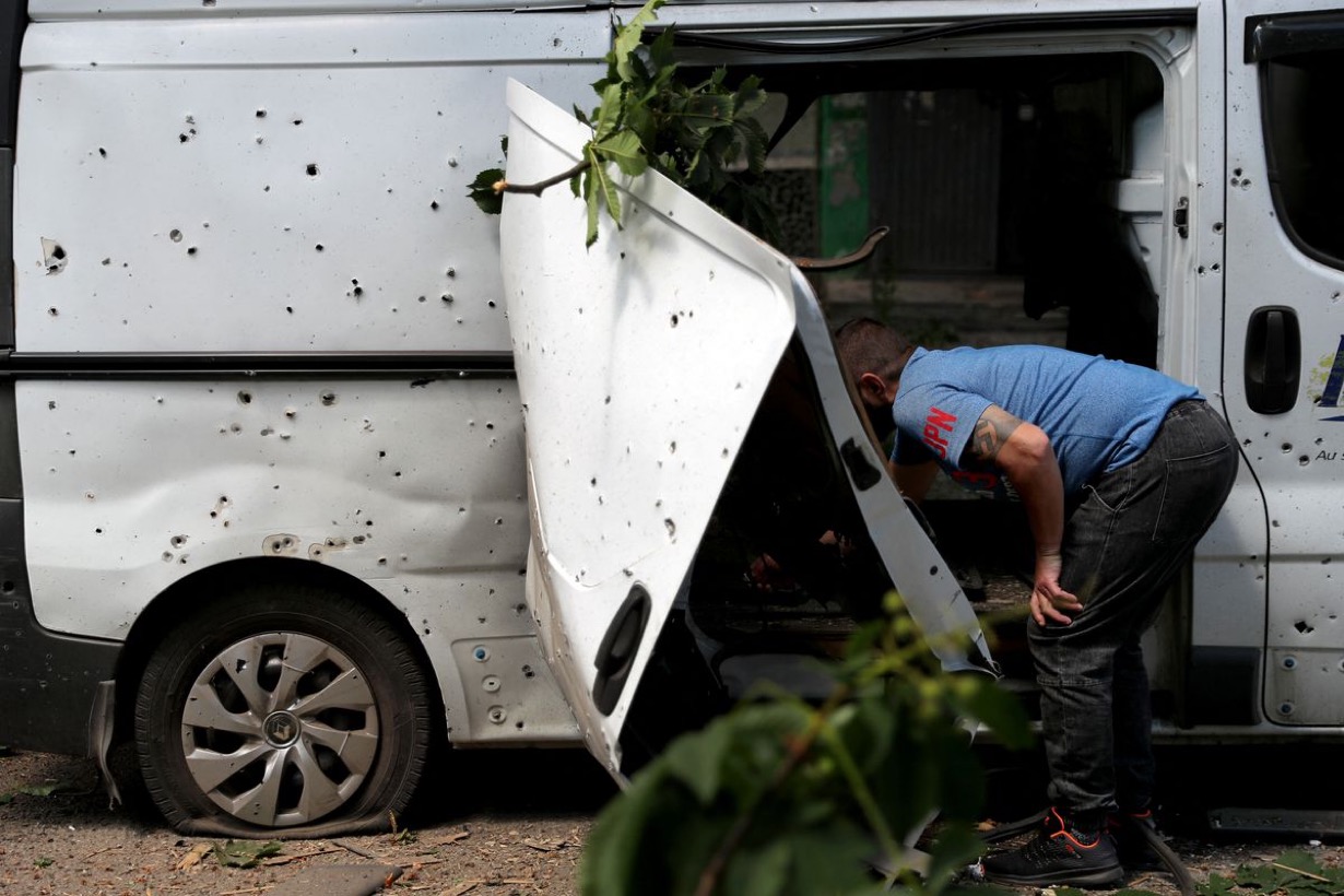Το πρακτορείο @Reuters έβαλε σ’ αυτή τη φωτογραφία από #Kharkov λεζάντα “ντόπιος κάτοικος εξετάζει βομβαρδισμένο βαν”. Ο τύπος έχει μεγαλοπρεπή σβάστικα στο μπράτσο, οι Ρώσοι “έκραξαν” το πρακτορείο για την “αμέλεια” να εξηγήσει πώς & γιατί. Μήπως είναι από το #Azov delivery;