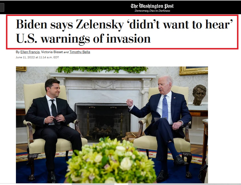 Ο Πρόεδρος Μπάιντεν είπε ότι ο Πρόεδρος της Ουκρανίας Βολοντίμιρ Ζελένσκι «δεν ήθελε να το ακούσει» όταν οι αξιωματούχοι των υπηρεσιών πληροφοριών των ΗΠΑ εξέφρασαν προειδοποιήσεις για μια επικείμενη ρωσική επίθεση πριν από την εισβολή της 24ης Φεβρουαρίου.
