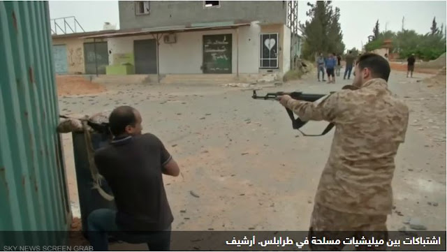 Σε περιοχές της πρωτεύουσας της Λιβύης, Τρίπολη , σημειώθηκαν χθες το βράδυ και το πρωί του Σαββάτου βίαιες συγκρούσεις μεταξύ δύο ένοπλων ομάδων στις οποίες χρησιμοποιήθηκαν πολυβόλα, κατά τη διάρκεια των οποίων σημειώθηκε διακοπή ρεύματος.