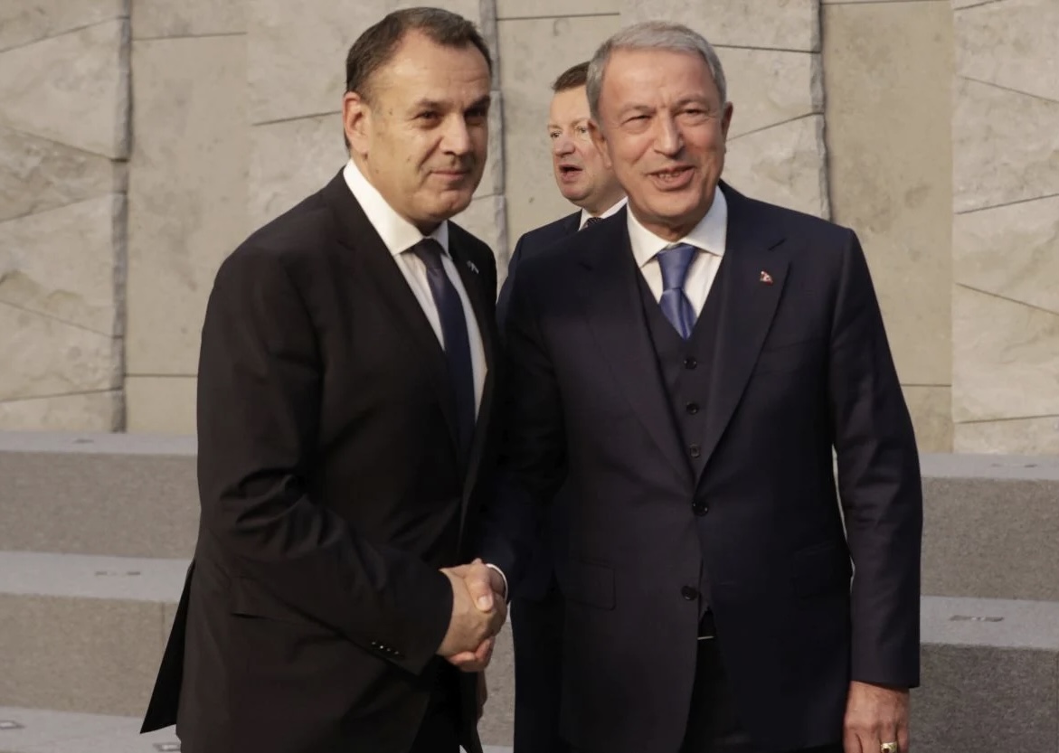 Κατά τη διάρκεια της Συνόδου των Υπουργών Άμυνας του NATO στις Βρυξέλλες, ο Νίκος Παναγιωτόπουλος είχε ένα σύντομο τετ α τετ με τον Χουλουσί Ακαρ μετά την καθιερωμένη «οικογενειακή» φωτογραφία.