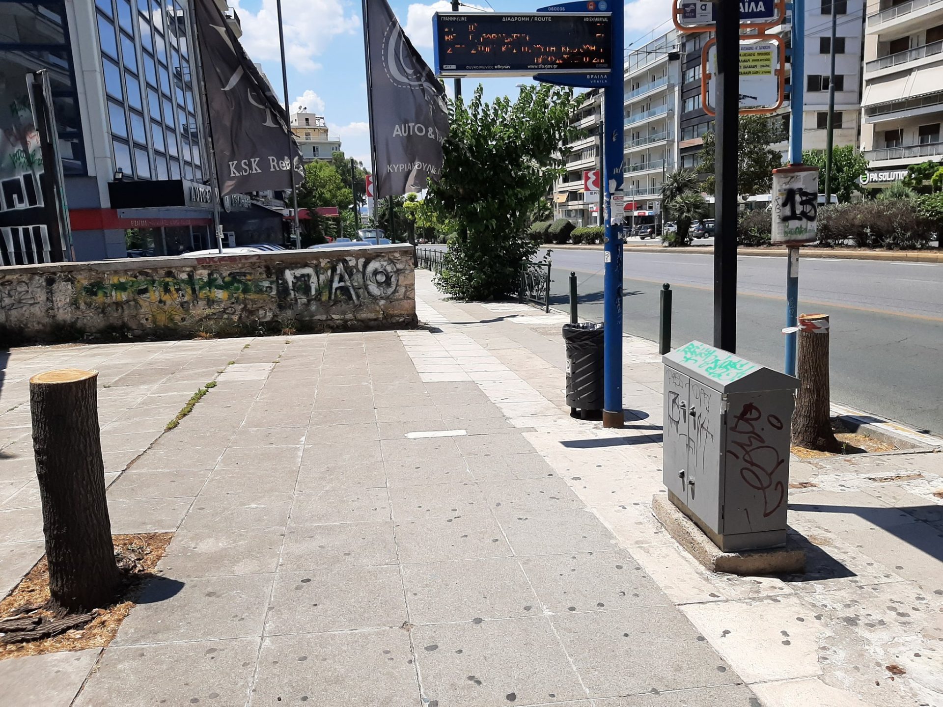 Στάση Βραιλα Λεωφ. Αλεξανδρας. Είχε 3 μεγάλες μουριες να κάνουν σκια σε όσους επιβάτες περίμεναν λεωφορεία. Την περασμενη εβδομάδα τις εκοψαν και αυτές.