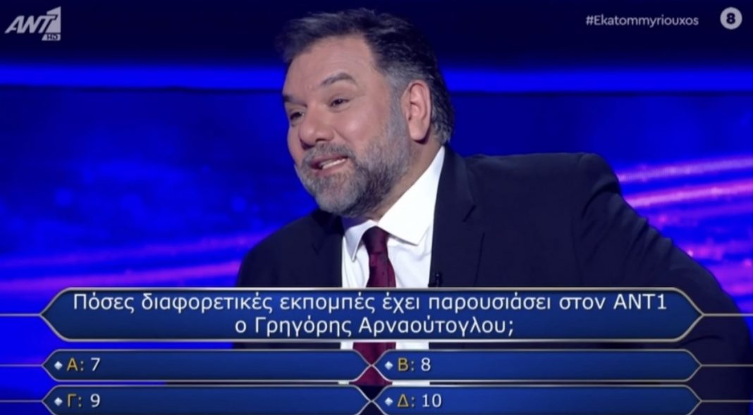 Εντονες αντιδράσεις προκαλει η ερώτηση για τον Γρηγορη Αρναούτογλου στο τηλεπαιχνίδι Ποιος θέλει να γίνει εκατομμυριούχος. Ήταν μια ερώτηση που αφορούσε προσωπικα τον παρουσιαστη και το κυριότερο μια ερώτηση που ήταν απίθανο να απαντούσε η παιχτρια οτι γνώσεις και αν είχε.