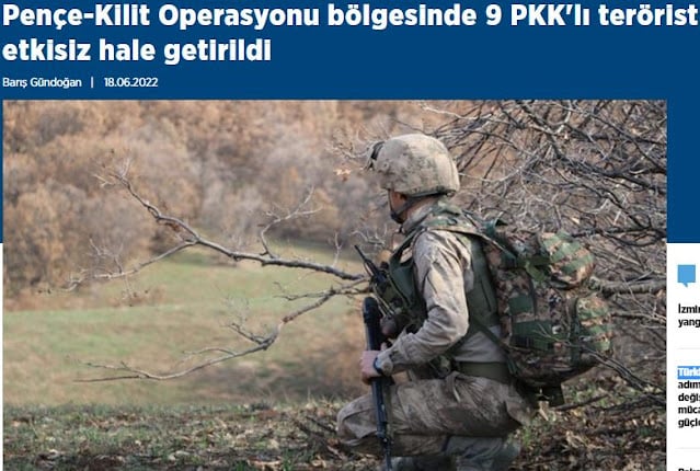 Σε ανακοίνωση του  το υπουργείο της τουρκικής Εθνικής Άμυνας αναφέρει ότι ‘εξουδετερώθηκαν’ 9 τρομοκράτες του Εργατικού Κόμματος του Κουρδιστάν – PKK από τον τουρκικό στρατό που εισέβαλε στην περιοχή του βόρειου Ιράκ και συνεχίζει τις εκκαθαριστές επιχειρήσεις.