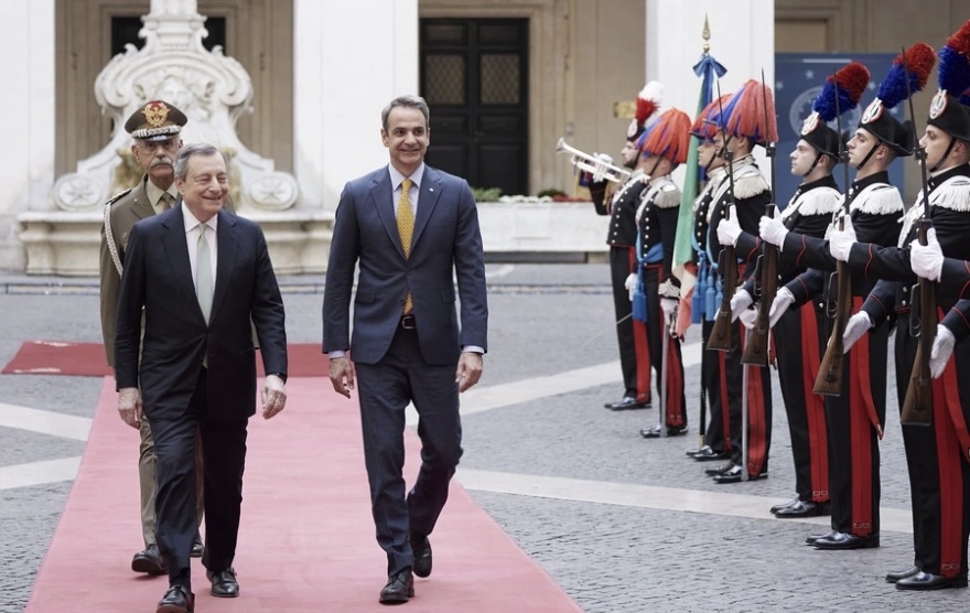 24 ώρες πριν τη Σύνοδο Κορυφής της ΕΕ ο πρωθυπουργός Κυριάκος Μητσοτάκης επισκέφθηκε τη Ρώμη οπου συναντηθηκε στο κυβερνητικό μέγαρο της Ρώμης Παλάτσο Κίτζι με τον Ιταλό πρωθυπουργό Μάριο Ντράγκι.