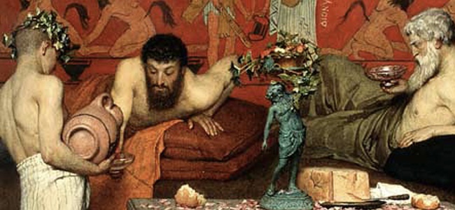 Τα συμπόσια ήταν ο καθρέφτης της αρχαιοελληνικής κοινωνίας. Πολλές φορές ήταν καλεσμένοι μουσικοί και χορευτές για να προσφέρουν θέαμα στους συνδαιτυμόνες.
