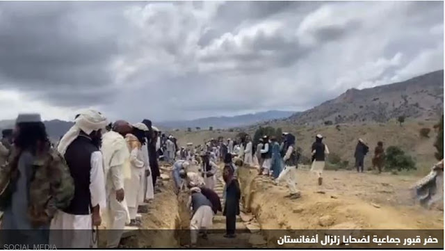 Εικόνες που κυκλοφόρησαν στα μέσα κοινωνικής δικτύωσης, την Πέμπτη, δείχνουν μια ομάδα πολιτών να σκάβει ομαδικούς τάφους για να θάψει τα θύματα του σεισμού που έπληξε το Αφγανιστάν.