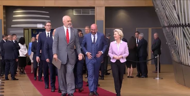 Ο πρωθυπουργός της Αλβανίας, Έντι Ράμα, μετά την άφιξή του στις Βρυξέλλες, στη σύνοδο κορυφής της ΕΕ, επανέλαβε ότι είναι κρίμα που μια χώρα του ΝΑΤΟ, η Βουλγαρία, κρατά σε ομηρία δύο μέλη του ΝΑΤΟ.