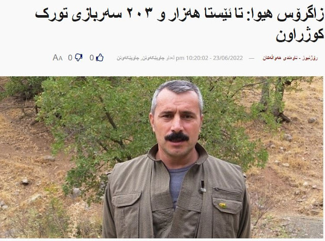 «Ο τουρκικός Τύπος σκόπιμα δεν αποκαλύπτει τον αριθμό των Τούρκων νεκρών ως αποτέλεσμα των επιχειρήσεων στο Βόρειο Κουρδιστάν, θέλει να πει ότι δεν υπάρχουν αντάρτες στο Βόρειο Κουρδιστάν και μόνο στο Νότιο Κουρδιστάν (στην επικράτεια του Ιράκ).