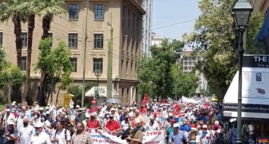 Ξανά στους δρόμους κατέβηκαν χιλιάδες συνταξιούχοι σήμερα στο κέντρο της Αθήνας, παρά τον καύσωνα, πραγματοποιώντας μεγάλη πορεία διαμαρτυρίας προς τη Βουλή.