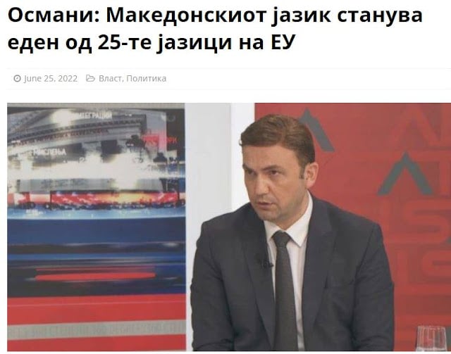 Μιλώντας στην εκπομπή «360 Μοίρες» του Alsat TV, ο Οσμάνι δήλωσε ότι είναι μια από τις μεγαλύτερες νίκες για τον ‘μακεδονικό’ λαό και τη χώρα.