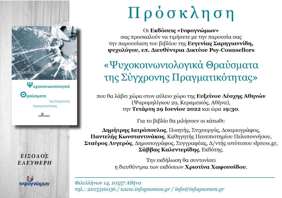 Παρουσίαση βιβλίου: Ψυχοκοινωνιλογικα Θραύσματα της Σύγχρονης Πραγματικότητας