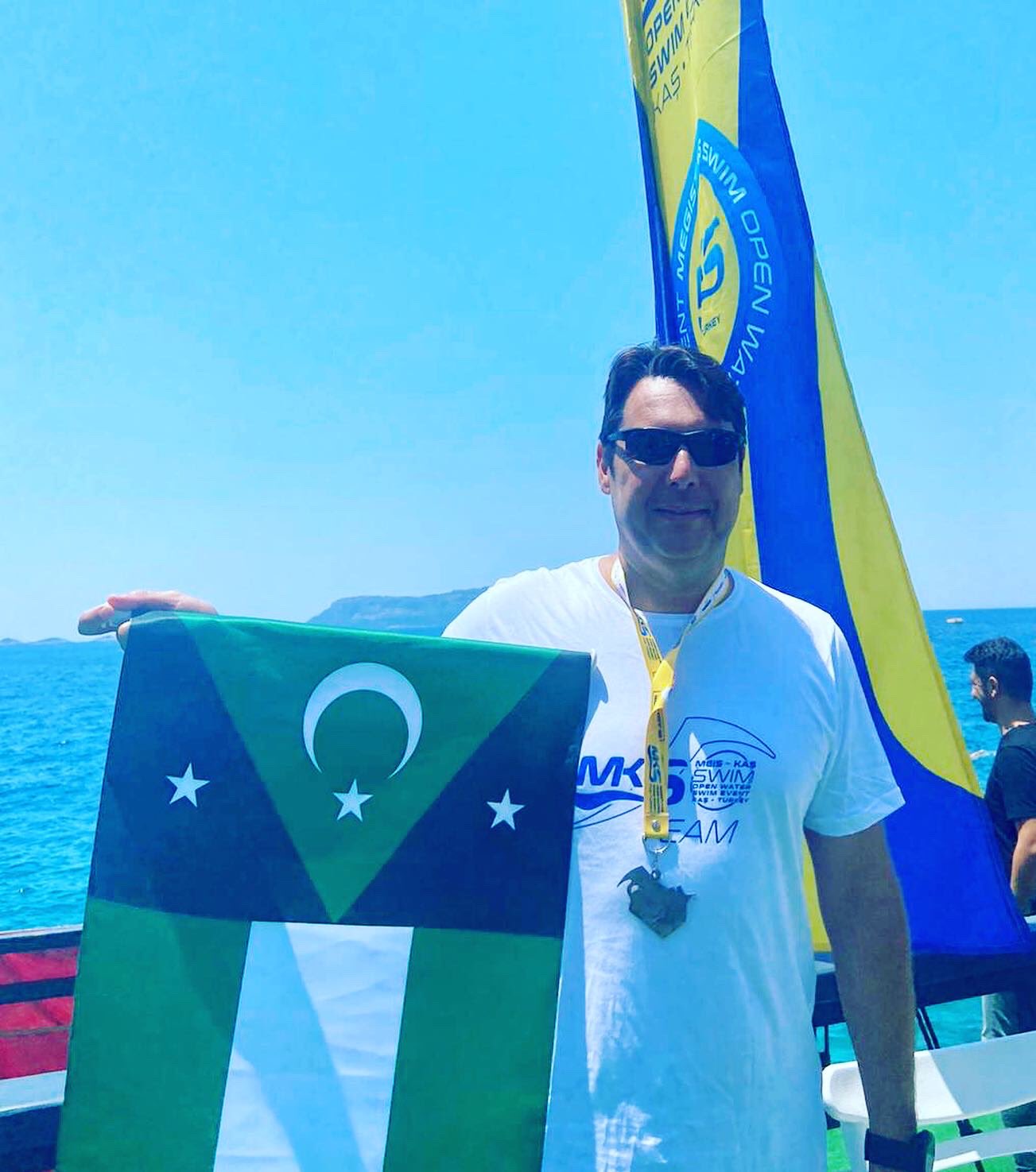 Πρόκειται για τον Τσεμ Κουρσάντ Χασάνογλου, αντιδήμαρχο του Οσμανγκάζι ο οποίος έλαβε μέρος σε κολυμβητικό αγώνα στο πλαίσιο του Διεθνούς Φεστιβάλ Πολιτισμού και Τέχνης «Lycian Kas» που διοργανώνεται για 23η φορά από τον τουρκικό δήμο Κας.