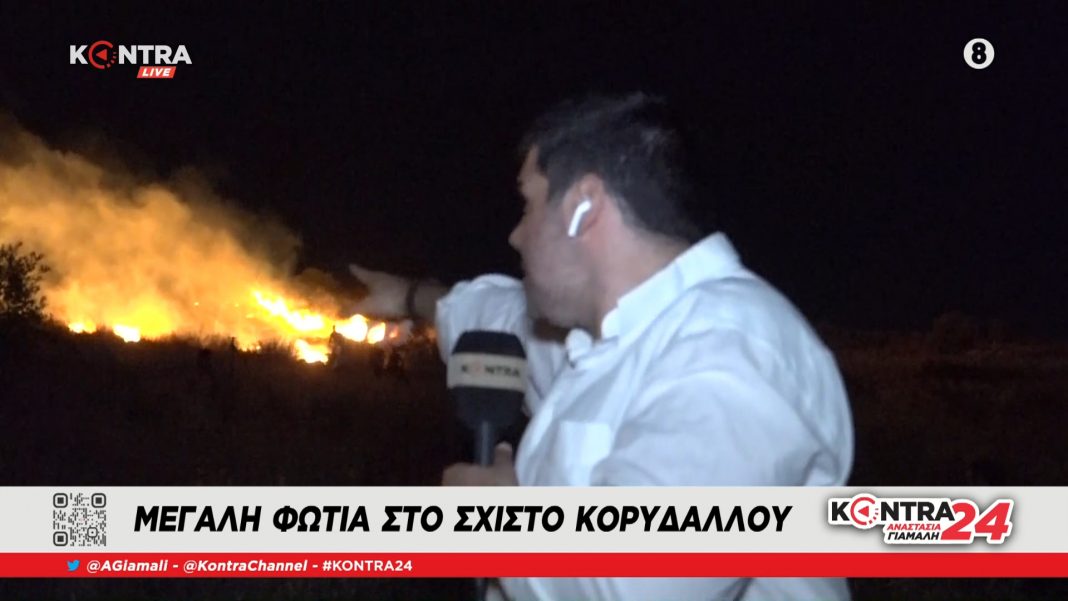 Φωτιά ξέσπασε τις βραδινές ώρες στο Σχιστό Κορυδαλλού, με την πυροσβεστική να σπεύδει στο σημείο. Η πυρκαγιά καίει σε χαμηλή βλάστηση, πάνω από τα τελευταία σπίτια.