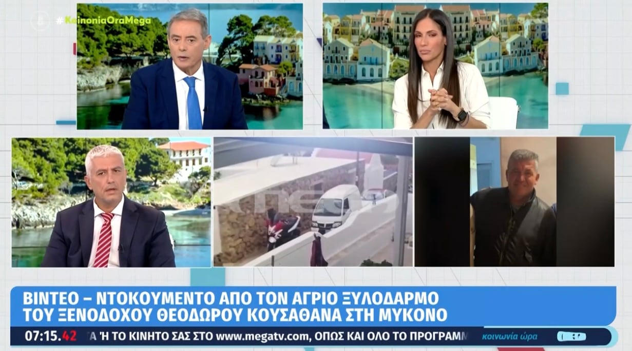 Τις στιγμές τρόμου που έζησε ο ξενοδόχος Θοδωρής Κουσαθανάς στη Μύκονο, όταν έπεσε θύμα άγριου ξυλοδαρμού στον περιφερειακό, στην περιοχή Βίδα της Χώρας, απεικονίζει ένα σοκαριστικό βίντεο ντοκουμέντο, που βλέπει για πρώτη φορά το φως της δημοσιότητας.