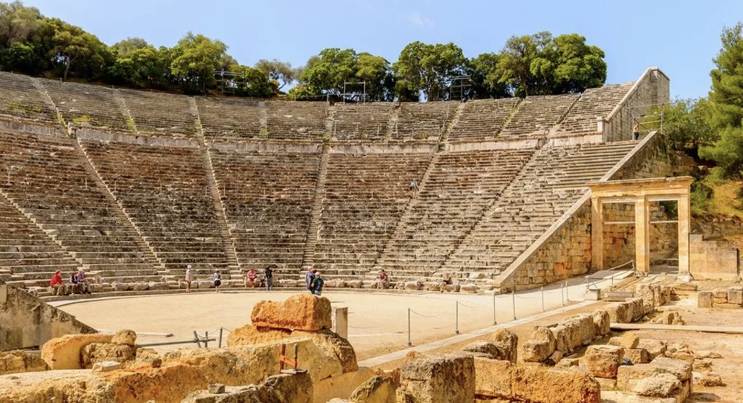 «Το θέατρο το έχτισε ο αρχιτέκτονας Πολύκλειτος για να διασκεδάζουν οι ασθενείς. Με το πέρασμα των αιώνων διατηρήθηκε και τα τελευταία εξήντα, περίπου χρόνια λειτουργεί με τις παραστάσεις του Φεστιβάλ. Η ακουστική του είναι μοναδική. Στα καλύτερά του μπορεί να χωρέσει μέχρι και 13.000 θεατές. Δεν υπάρχει σκηνοθέτης που να μην ονειρεύεται να βρεθεί εκεί».