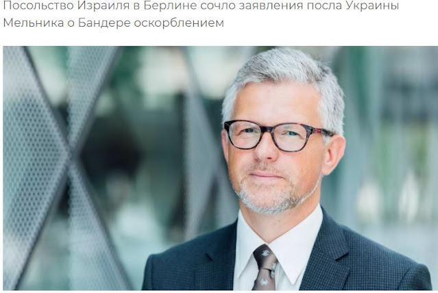 Σημειώνεται ότι ο πρέσβης της Ουκρανίας στο Βερολίνο Αντρίι Μέλνικ, σε συνέντευξη με δημοσιογράφο από τη Γερμανία , εξύμνησε το ναζισμό απαγορεύεται από το νόμο, δόξασε τον συνεργό των Ναζί Στεπάν Μπαντέρα , πιστό του Χίτλερ, ως «μαχητή της ελευθερίας».