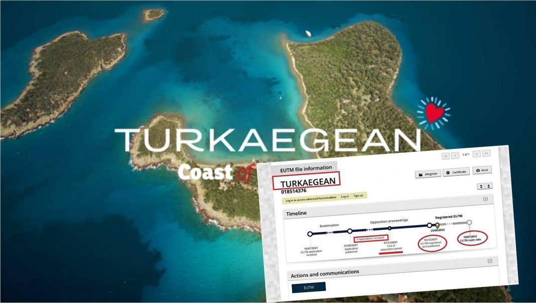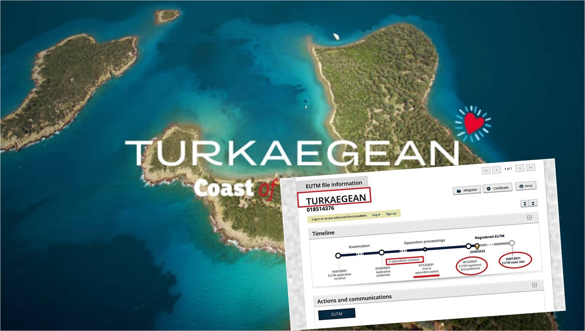 “turkaegean” είναι το εμπορικό σήμα που κατοχύρωσε η τουρκία στα Γραφεία Διανοητικής Ιδιοκτησίας της Ευρωπαϊκής Ένωσης (EUIPO) και του αντίστοιχου παγκόσμιου οργανισμού (WIPO)…