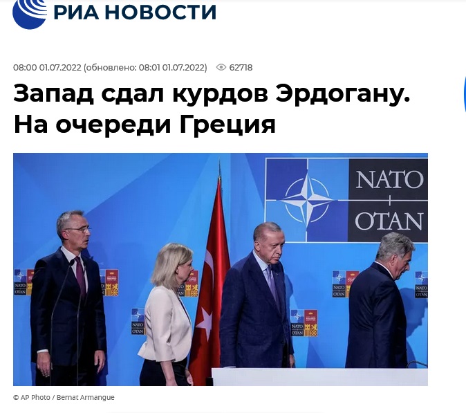 Πρακτορείο RIA NOVOSTI: “Η Δύση έδωσε τους Κούρδους στον Ερντογάν. Ακολουθεί η Ελλάδα”