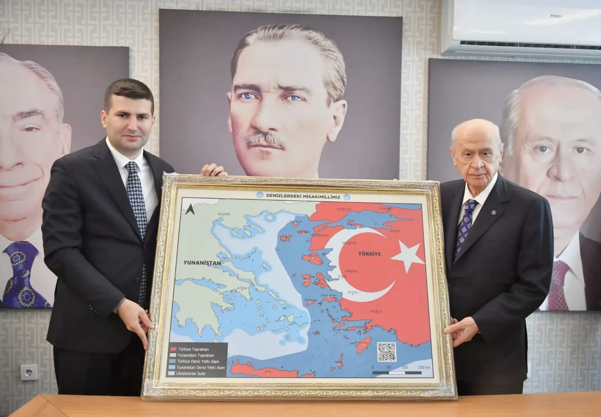 Ο Τούρκος Μπαχτσελί, Κυβερνητικός εταίρος του Ερντογάν, κρατά στα χέρια του και επιδεικνύει δημοσίως έναν χάρτη ο οποίος ακρωτηριάζει την μισή Ελλάδα, περιλαμβάνοντας ακόμα και την Κρήτη.