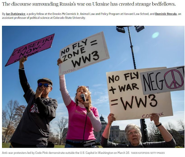 Αν και η πλειοψηφία του αμερικανικού κοινού, με επικεφαλής τον πρόεδρο των ΗΠΑ Τζο Μπάιντεν, υποστήριξε την Ουκρανία, πολλοί, αριστεροί και δεξιοί, έσπευσαν να υπερασπιστούν το καθεστώς του Ρώσου Προέδρου Βλαντιμίρ Πούτιν ή τουλάχιστον προέτρεψαν τις Ηνωμένες Πολιτείες να μην αναμειχθούν στην υπεράσπιση της Ουκρανία, αναφέρει το δημοσίευμα.