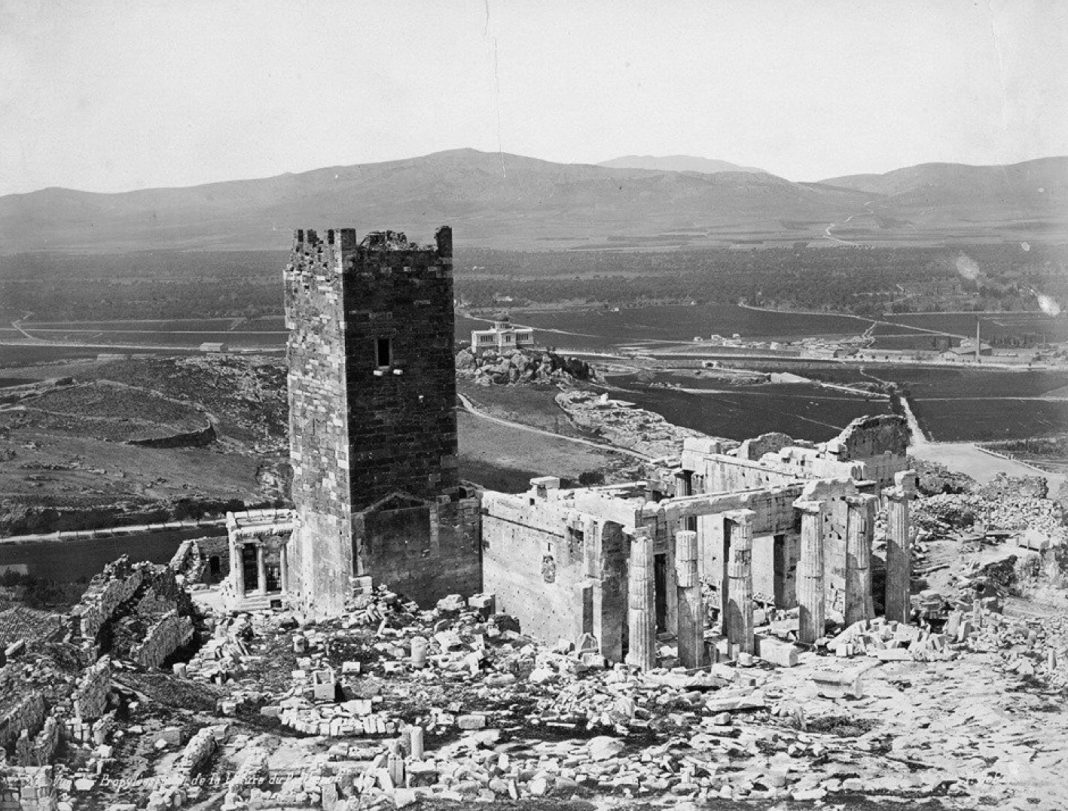 Δεν υπάρχουν πολλές λεπτομέρειες και κανείς δεν μπορεί να πει με βεβαιότητα πότε ακριβώς χτίστηκε, πάντως ήταν μέρος της ευρύτερης μετατροπής του αρχαιολογικού χώρου μέχρι τα Προπύλαια σε φράγκικό παλάτι. Οι φωτογραφίες που τον απεικονίζουν είναι εξαιρετικά σπάνιες και φέρεται να έχουν τραβηχτεί λίγο πριν το 1874 Πρωτοσελιδα – Ειδήσεις