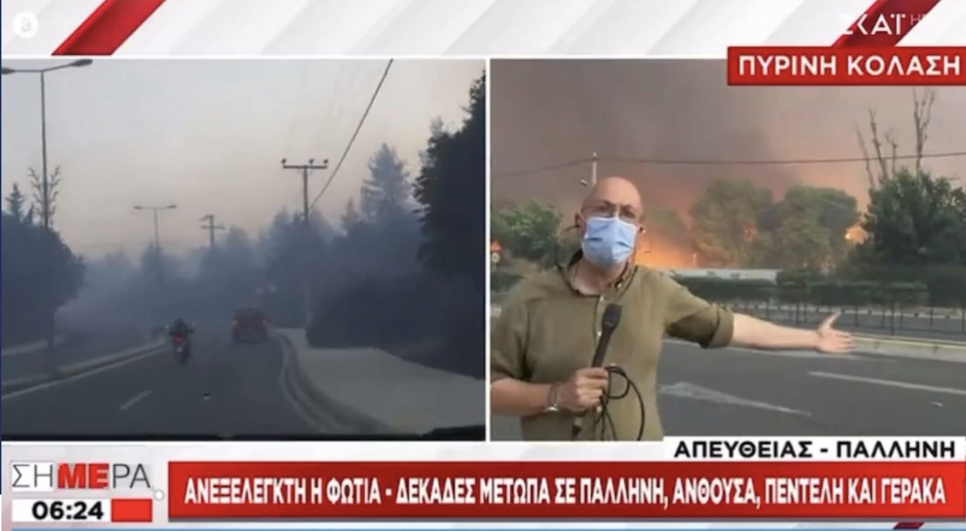 Όπως προκύπτει από το βίντεο, φαίνεται ότι ο δημοσιογράφος του Σκάι ζήτησε από κάποιον πολίτη να μην μιλάει, με αποτέλεσμα ο άνθρωπος που έβλεπε την περιουσία του να καίγεται, να εξοργιστεί και μαζί με άλλους παριστάμενους να επιτεθούν λεκτικά στο συνεργείο.