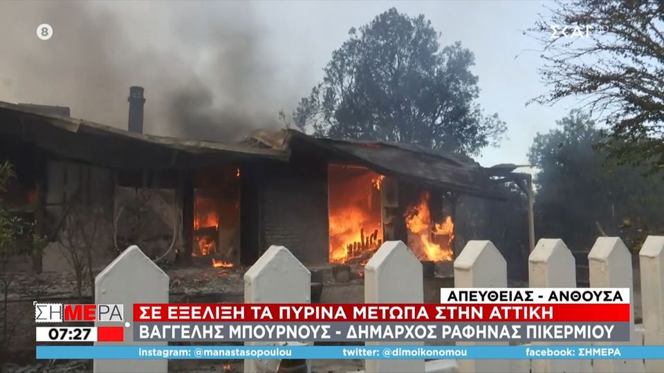Την ώρα που η δημοσιογράφος του ΣΚΑΪ Βαλεντίνη Καραγεωργίου βρισκόταν στον «αέρα», παραδόθηκε στις φλόγες κατοικία μεταξύ Ανθούσας και Παλλήνης.