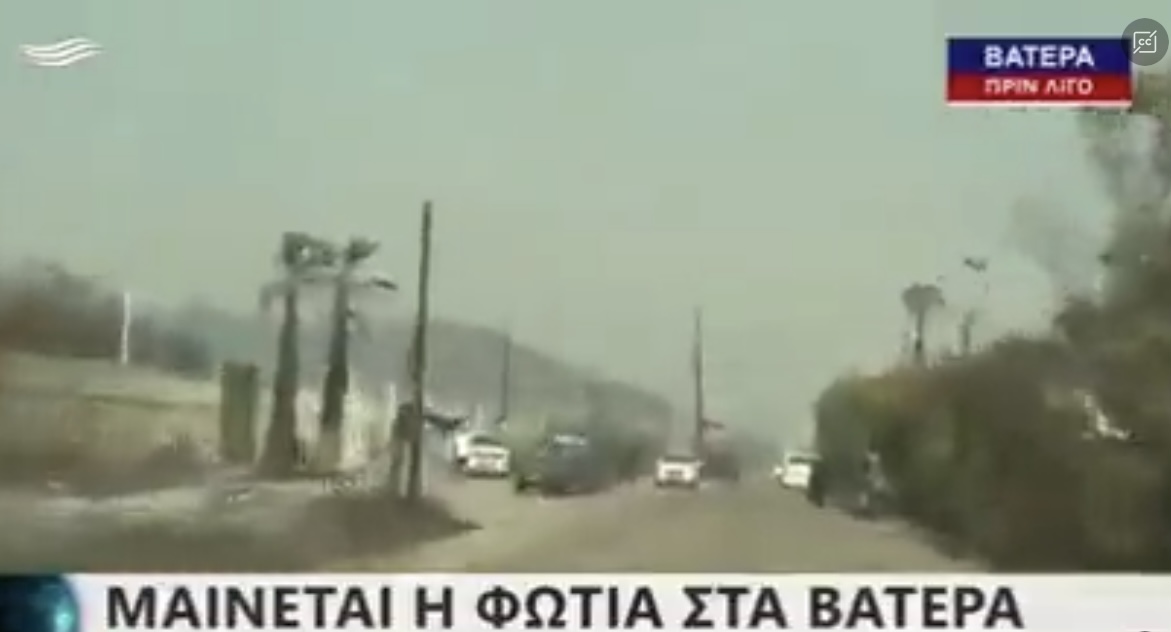 Στην περιοχή των Βατερών, από αέρος επιχειρείται η κατάσβεση της πυρκαγιάς στο γειτονικό δάσος, ενώ πεζοπόρα τμήματα επιχειρούν μέσα στον οικισμό. Έχουν καεί ή έχουν υποστεί ζημιές σπίτια και επιχειρήσεις.