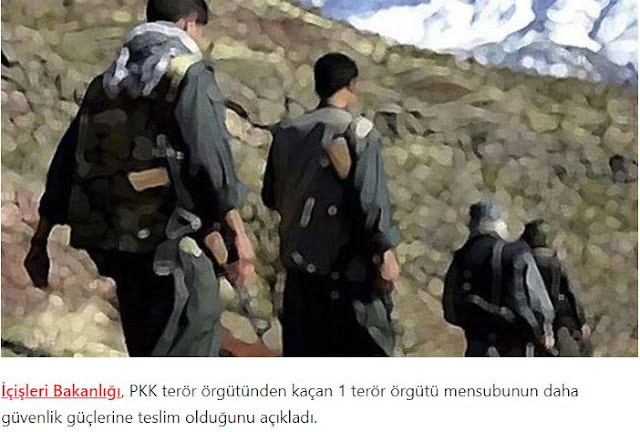 Ως αποτέλεσμα των μελετών πειθούς (σημ.εξαπόλυσης προπαγάνδας) που πραγματοποιήθηκε από τη Γενική Διοίκηση Χωροφυλακής και τη Γενική Διεύθυνση Ασφαλείας υπό τον συντονισμό του Υπουργείου Εσωτερικών, ένα μέλος της τρομοκρατικής οργάνωσης, διέφυγε από το PKK παραδόθηκε στις δυνάμεις ασφαλείας, γράφει η τουρκική Sozcu.