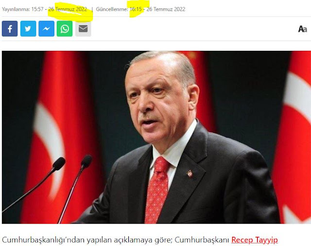 Σύμφωνα με τη δήλωση της Προεδρίας· Ο Πρόεδρος Ρετζέπ Ταγίπ Ερντογάν θα πραγματοποιήσει μονοήμερη επίσκεψη στο Σότσι στις 5 Αυγούστου 2022.