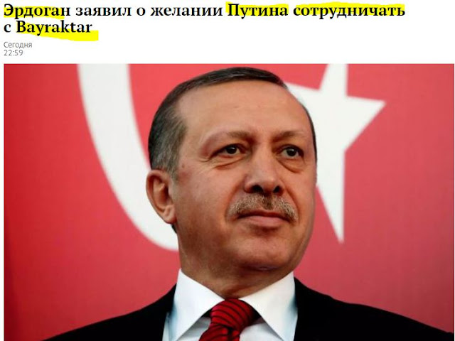 Ο Τούρκος ηγέτης Ρετζέπ Ταγίπ Ερντογάν δήλωσε ότι ο Ρώσος πρόεδρος Βλαντίμιρ Πούτιν είχε εκφράσει ενδιαφέρον να συνεργαστεί με την τουρκική εταιρεία κατασκευής μη επανδρωμένων αεροσκαφών Bayraktar. Αυτό μετέδωσε το κανάλι CNN Turk.