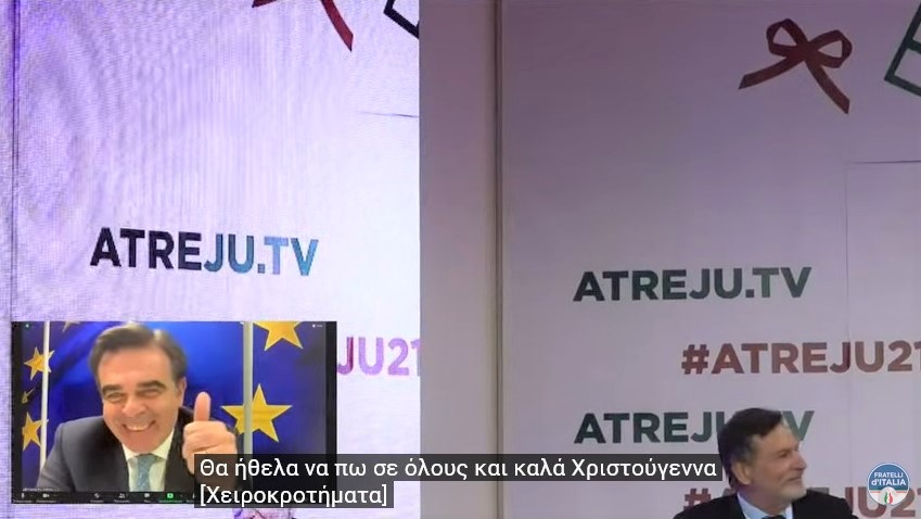 Τον Δεκέμβριο, στο ετήσιο φεστιβάλ Atreju – μια εκδήλωση για τη δεξιά νεολαία της Ιταλίας, που ιδρύθηκε από τη Μελόνι το 1998,  ήταν καλεσμένος ως ομιλητής ήταν ο Μαργαρίτης Σχοινάς