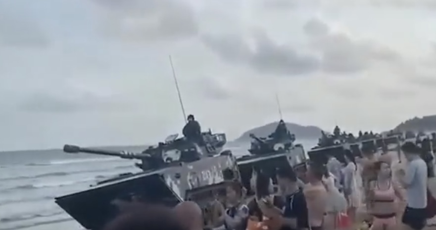 Οι παραλίες λοιπόν έναντι της Ταϊβάν, στο κοντινότερο σημείο από την πλευρά της Κίνας, έχουν γεμίσει με άρματα μάχης, αποβατικά και ισχυρά στρατεύματα.