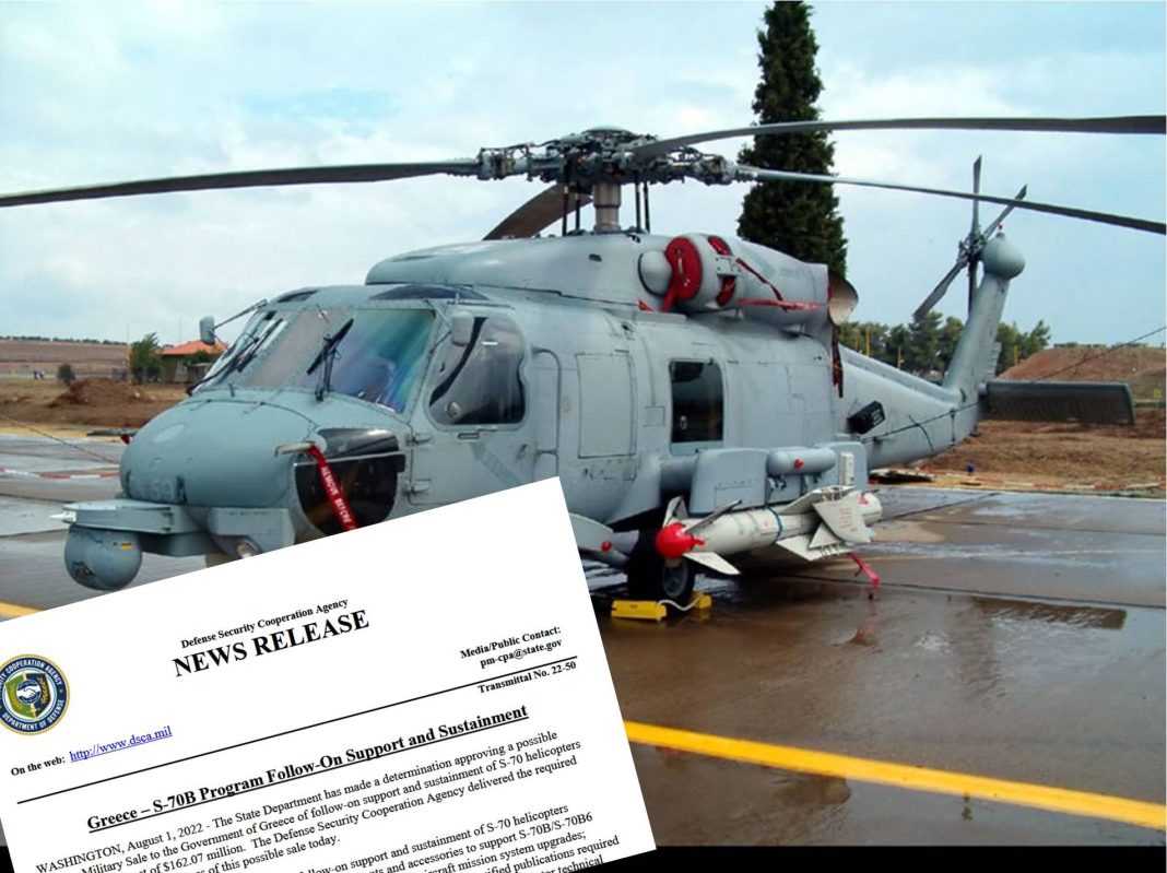 Το Στέιτ Ντιπάρτμεντ έχει αποφασίσει να εγκρίνει μια πώληση FMS στην κυβέρνηση της Ελλάδας, εν συνεχεία υποστήριξης και συντήρησης ελικοπτέρων S-70 με εκτιμώμενο κόστος 162,07 εκατομμυρίων δολαρίων. Η Υπηρεσία Συνεργασίας για την Αμυντική Ασφάλεια (DSCA) παρέδωσε την απαιτούμενη πιστοποίηση στο Κογκρέσο για αυτήν την πιθανή πώληση σήμερα.