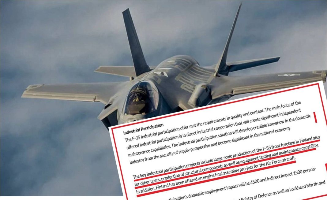 Διαβάστε τώρα απόσπασμα από το δελτίο τύπου της 10ης Δεκ. 2021 του ΥΠΑΜ της Φινλανδίας σχετικά με την απόφαση προμήθειας 64 F-35 και την ειδική αναφορά στην βιομηχανική συμμετοχή και συμπαραγωγή απαρτίων των αεροσκαφών από την αμυντική βιομηχανία της Φινλανδίας