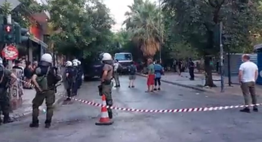 Ένταση επικράτησε το πρωί στα Εξάρχεια, καθώς συγκεντρωμένοι και ΜΑΤ, συγκρούστηκαν επειδή οι εργάτες άρχισαν να κάνουν εργασίες για να ξεκινήσουν τα έργα για το Μετρό στην πλατεία.