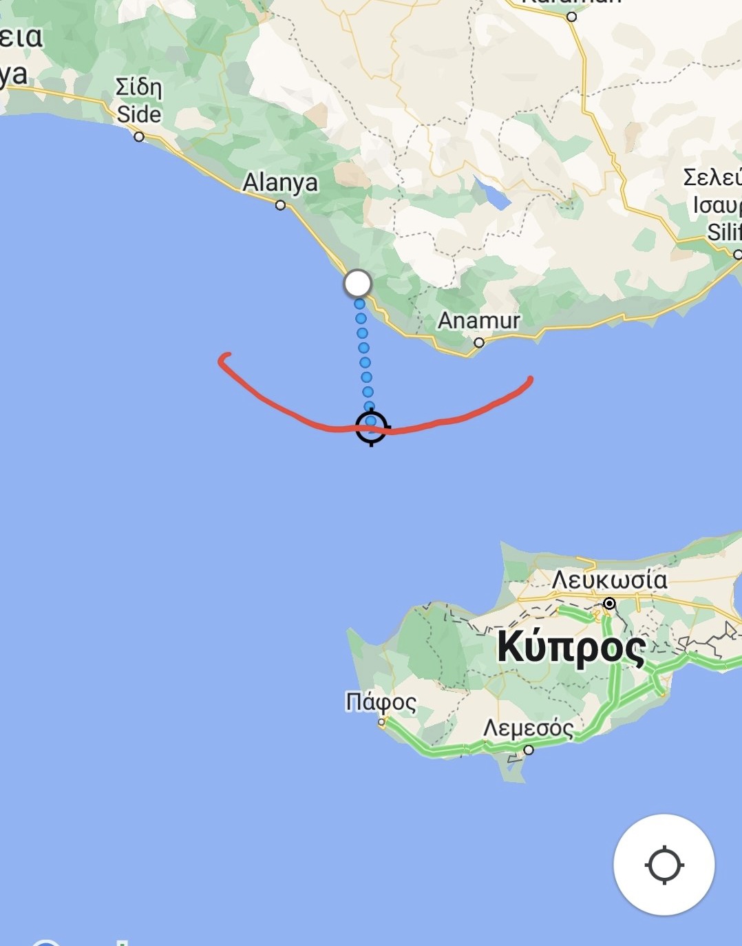 Επιβεβαιώθηκε η περιοχή που έδωσε ο Ερντογάν. Β-ΒΔ της Κύπρου, εκτός ΑΟΖ Κύπρου και αποκαλούμενης ΑΟΖ του ψευδοκράτους, εντός της Τουρκικής υφαλοκρηπίδας που έχει οριοθετήσει παράνομα η Τουρκία με το ψευδοκράτος.