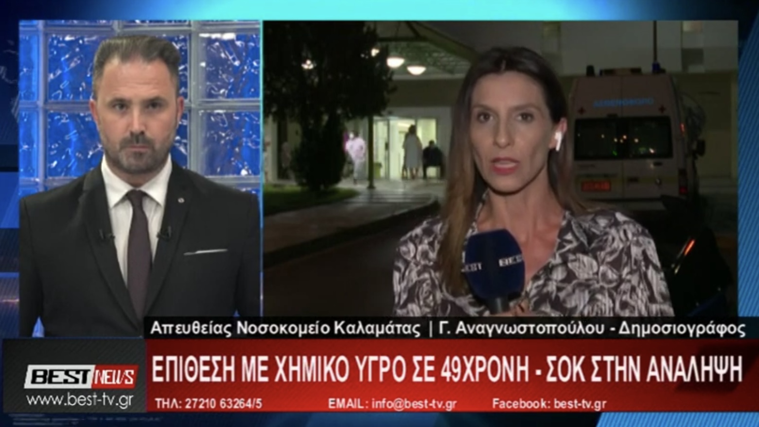 Στο Νοσοκομείο Καλαμάτας όπου μεταφέρθηκε σφαδάζοντας από τους πόνους η 49χρονη, υπεβλήθη σε επέμβαση, καθώς ειδικά το τραύμα που έχει στο ένα μάτι είναι ιδιαίτερα σοβαρό, με τους γιατρούς να λένε ότι έχει υποστεί χημικό έγκαυμα.