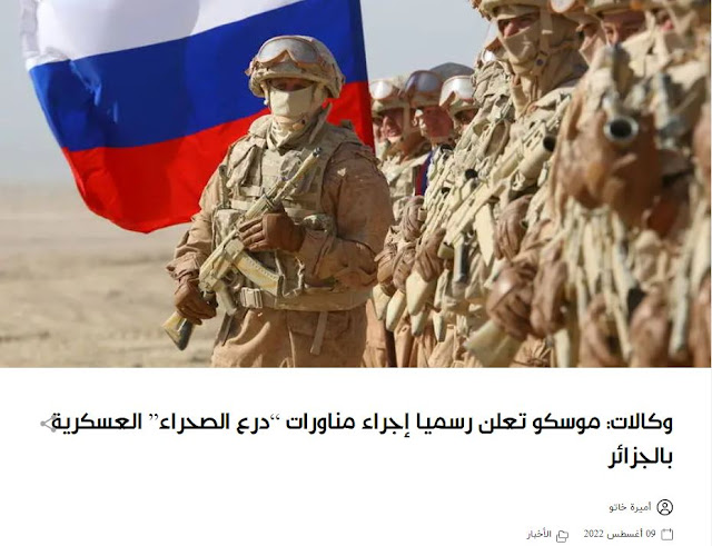 «Οι κοινές ρωσο-αλγερινές αντιτρομοκρατικές ασκήσεις Ασπίδα της Ερήμου 2022 θα πραγματοποιηθούν στην Αλγερία για πρώτη φορά. Η δεύτερη τελική διάσκεψη σχεδιασμού για την προετοιμασία για την κοινή ρωσο-αλγερινή άσκηση πραγματοποιήθηκε στην επαρχία Μπεχάρ της Αλγερίας.