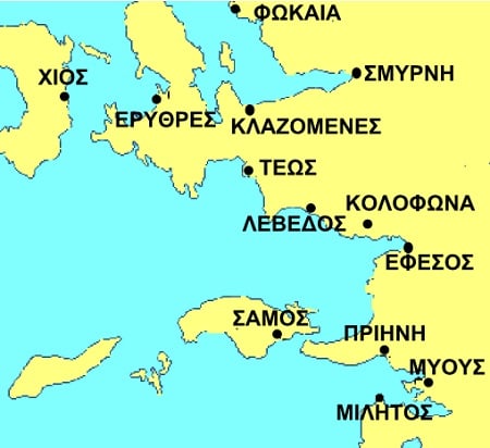 Στην Ιωνία, τον τόπο που ο πολυταξιδεμένος Ηρόδοτος θεωρούσε ως το ωραιότερο μέρος της οικουμένης, άνθισε για πρώτη φορά το ελληνικό πνεύμα. Αυτό δεν έγινε τυχαία. Τα λιμάνια της Ιωνίας, η Μίλητος, η Πριήνη, η Έφεσος, η Σμύρνη, ήταν από αμνημονεύτων χρόνων το σταυροδρόμι χερσαίων και θαλάσσιων δρόμων, γιατί πολλές από τις πόλεις αυτές υπήρξαν μινωικές και μυκηναϊκές αποικίες πριν επανεποικιστούν από Ίωνες και Αιολείς.