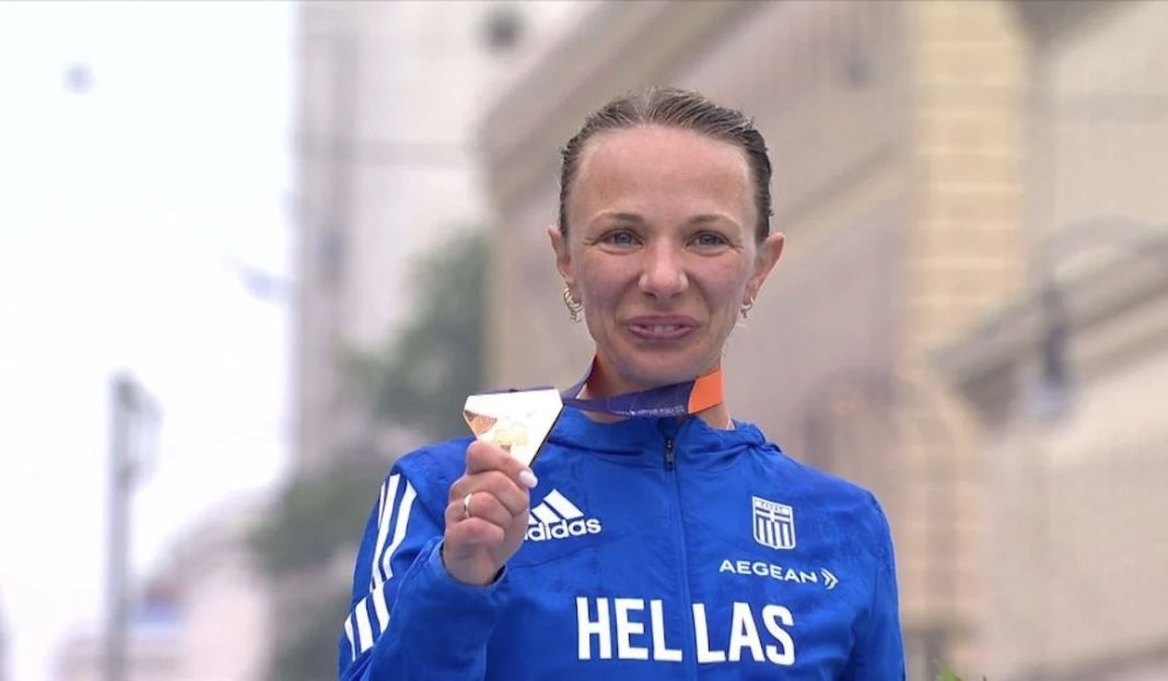 Λίγη ώρα μετά τον τερματισμό της στα 20 χιλιόμετρα βάδην γυναικών, η Αντιγόνη Ντρισμπιώτη κρέμασε στο στήθος της το χρυσό μετάλλιο του ευρωπαϊκού πρωταθλήματος ανοιχτού στίβου, που γίνεται στο Μόναχο, κατά τη διάρκεια της απονομής.