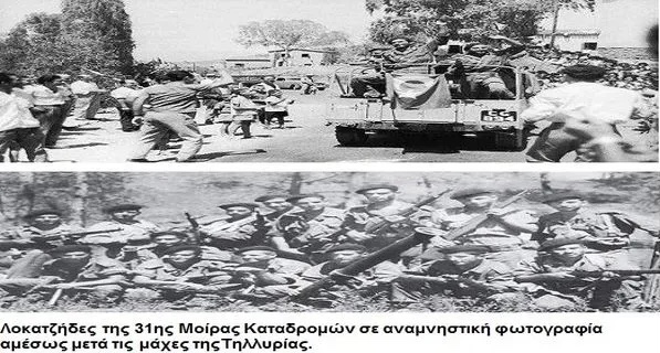 Σημειωτέον ότι η 31 Μοίρα Καταδρομών ιδρύθηκε στις 9 Ιουλίου 1964 και εγκαταστάθηκε στο χωριό Ευρύχου, στους πρόποδες του Τροόδους. Πρώτος Διοικητής της Μοίρας διετέλεσε ο Ταγματάρχης Γεώργιος Καρούσος. Στις 7 Αυγούστου 1964, η 31 Μοίρα Καταδρομών έλαβε μέρος στις επιχειρήσειςΤηλλυρίας. Κατάφερε να εκκαθαρίσει το χωριό Αλεύκα και να καταλάβει το ΒΔ μέρος του υψώματος Λωρόβουνος. Στις 21 Σεπτεμβρίου, η Μοίρα μεταφέρθηκε στο Μιτσερό. Στην συνέχεια, στις 7 Οκτωβρίου, πραγματοποιήθηκε στηνΛεμεσό η τελετή παραδόσεως της πρώτης πολεμικής σημαίας από τον τότε Αρχηγό ΑΣΔΑΚ Στρατηγό Γεώργιο Γρίβα Διγενή. Στις 15 Νοεμβρίου 1967, ο 1ος Λόχος Κρούσεως της 31 Μοίρας Καταδρομών έλαβε μέρος στις εκκαθαριστικές επιχειρήσεις Κοφίνου. Η Μοίρα κατόρθωσε να εξουδετερώσει κάθε αντίσταση και να αποκαταστήσει την συγκοινωνιακή επαφή, εισερχόμενη στα χωριά Κοφίνου και Άγιος Θεόδωρος. Η Μοίρα είχε σύνθεση τριών Λόχων Κρούσεως (ΛΚ) και ενός Λόχου Υποστήριξης – Διοικητικής Μέριμνας (ΛΥ-ΔΜ). Κάθε Λόχος είχε δύναμη 80 ανδρών περίπου. Η δύναμις ανερχόταν σε 365 άνδρες: 10 μόνιμοι αξιωματικοί, 2 έφεδροι αξιωματικοί, 3 μόνιμοι λοχίες και 350 οπλίτες. Διοικητής ορίστηκε ο Ταγματάρχης Γεώργιος Ν. Καρούσος, μπαρουτοκαπνισμένος αξιωματικός από την εποχή της Εθνικής Αντίστασης, υποδιοικητής ο Λοχαγός Μιλτιάδης Λάσκαρης, διοικητές των λόχων κρούσης οι Λοχαγός Κωνσταντίνος Μπεκιάρης (1ος ΛΚ), Λοχαγός Ορέστης Μαρινάκης (2ος ΛΚ), Υπολοχαγός Νικόλαος Παπαγεωργίου (3ος ΛΚ) και Λοχαγός Παναγιώτης Καρατζάς (ΛΥ-ΔΜ).»