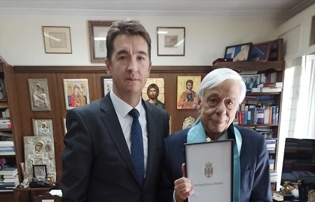 Σήμερα λοιπόν, ο Πρέσβης της Δημοκρατίας της Σερβίας στην Ελλάδα κ. Dušan Spasojević επισκέφθηκε τον τέως Πρόεδρο της Δημοκρατίας κ. Προκόπιο Παυλόπουλο στο γραφείο του και του επέδωσε το «Παράσημο της Δημοκρατίας της Σερβίας μετά ταινίας», το οποίο του απένειμε ο Πρόεδρος της Σερβίας κ. Aleksandar Vučić (διάταγμα αρ. KOPR 3, 12 Φεβρουαρίου 2021) «για την εξαίρετη συμβολή του στην ανάπτυξη και ενδυνάμωση της συνεργασίας και των φιλικών σχέσεων μεταξύ της Δημοκρατίας της Σερβίας και της Ελληνικής Δημοκρατίας» κατά την διάρκεια της θητείας του ως Προέδρου της Δημοκρατίας .