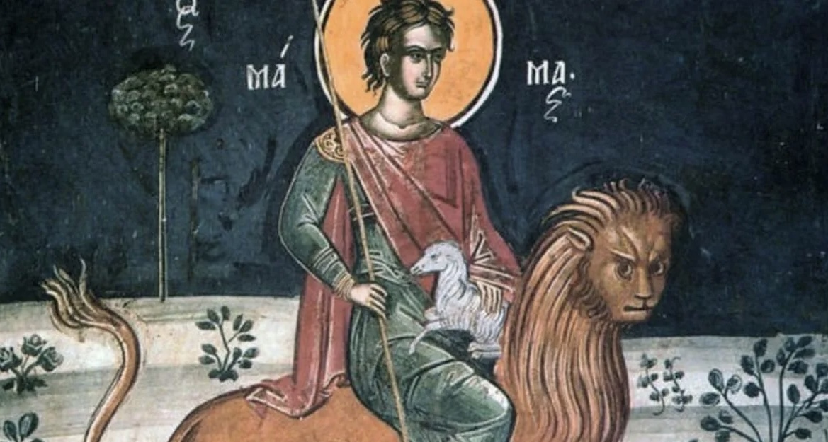 Μη γνωρίζοντας τι άλλο να κάνει, αποφάσισε να τον στείλει στον βασιλιά για να βασανίσει μέχρι θανάτου τον άγιο. Όντως, ο βασιλιάς φυλάκισε τον νέο και τον βασάνισε πολύ σκληρά. Έφτασε στο σημείο, μάλιστα, να διατάξει να τον κάψουν ζωντανό. Έτσι, μια μέρα οι φρουροί τον έδεσαν και άναψαν τις δάδες για να τον κάψουν. Όμως, οι φλόγες δεν κατευθύνονταν προς τον Μάμα, αλλά προς την αντίθετη κατεύθυνση, δηλαδή προς τους στρατιώτες. Σαστισμένος ο βασιλιάς διέταξε να δέσουν στον λαιμό του μόλυβδο και να τον πετάξουν στη θάλασσα. Και σε αυτή την περίπτωση, ο άγιος κατάφερε να σωθεί, ως εκ θαύματος, καθώς κόπηκε το σχοινί από τον λαιμό του. Βγήκε, λοιπόν, στη στεριά και κατευθύνθηκε προς τα βουνά της Καισαρείας. Εκεί, έμαθε να ζει συντροφιά με όλα τα άγρια ζώα, που υπήρχαν στην περιοχή, ακόμα και με λιοντάρια. Κατόρθωσε να τα εξημερώσει, να τα βοσκά και να τρέφεται από το γάλα τους.