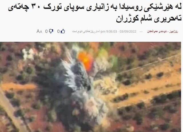 «Τα ρωσικά μέσα ενημέρωσης ανέφεραν ότι ο τουρκικός στρατός παρέδωσε πληροφορίες στη ρωσική Πολεμική Αεροπορία σχετικά με μια βάση της συριακής ομάδας ανταρτών που συμμάχησε με το τουρκικό κράτος και η Ρωσία βομβάρδισε τη βάση», γράφει η Rojava News.